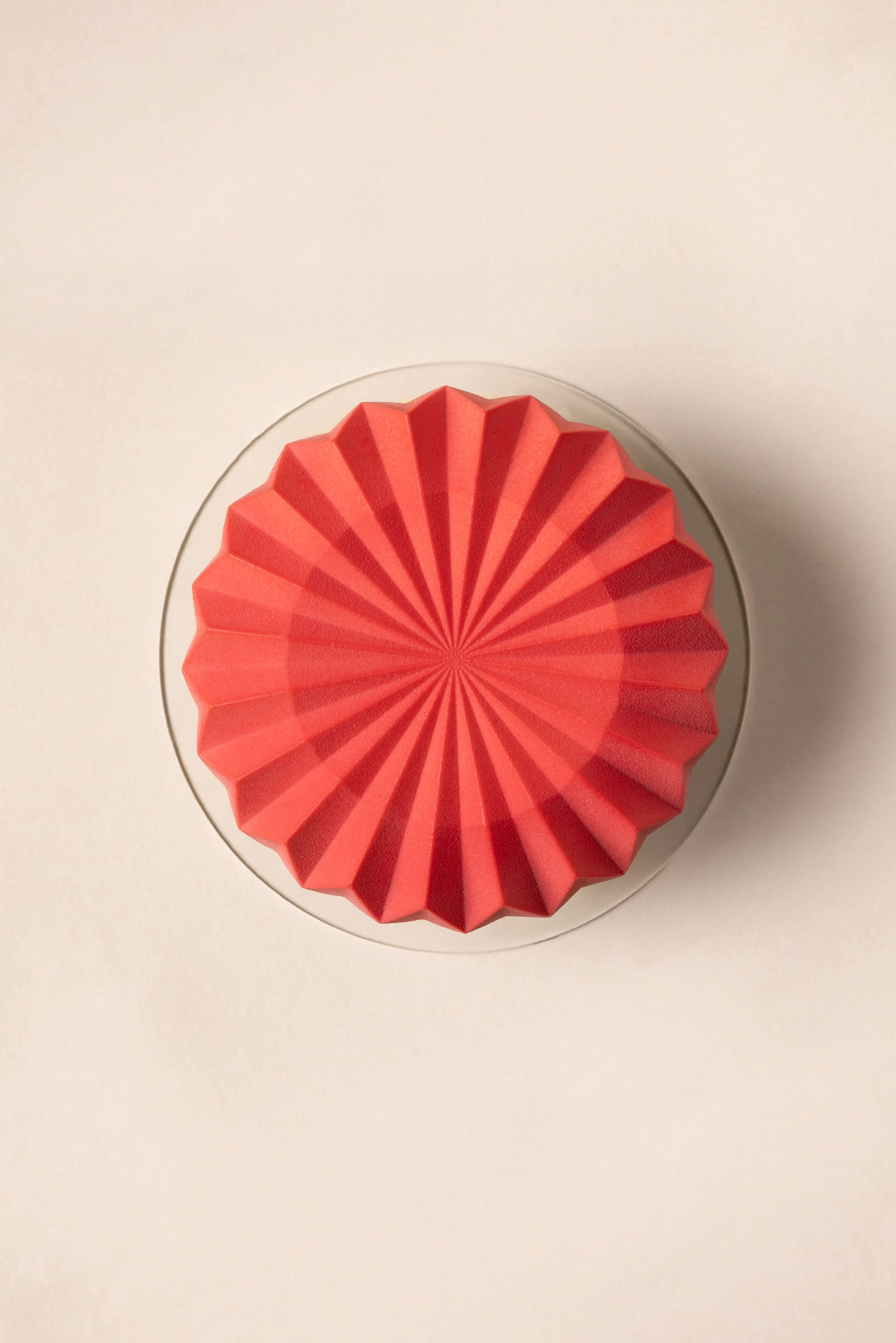 Immerse yourself in a reverie of chamomile-infused mousse that accentuates the tea’s floral subtleties, artfully wrapped around a refreshing apple lychee jelly with juicy lychee bits. Poised atop a soft almond dacquoise, this entremet is enrobed in a cheery red, striking yet delicate, and perfect for all palates and ages.