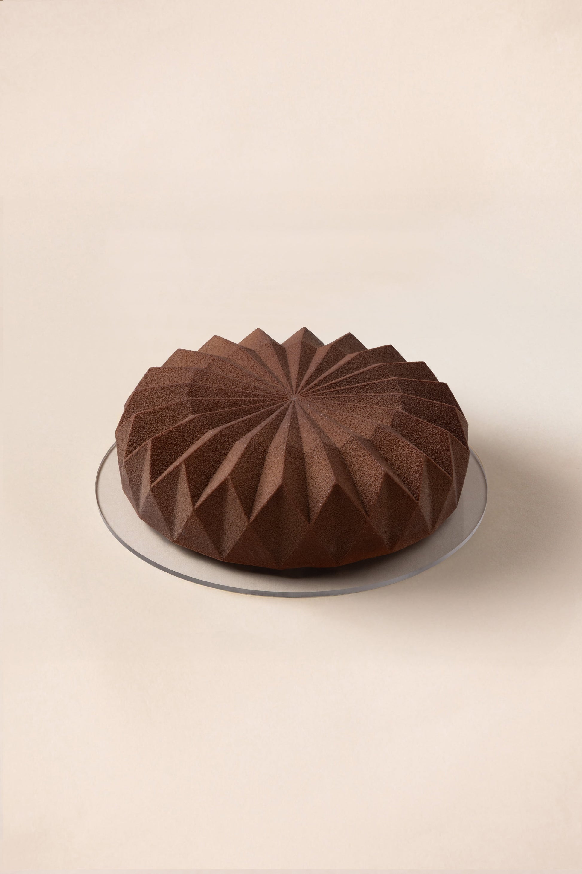 A perfectly luxurious touch this Christmas! The Rum & Raisin Origami features a velvety 54% dark chocolate ganache core imbued with the warmth of rum-soaked raisins, cocooned in silky-rich chocolate mousse. Slice into this glimmering centerpiece to reveal decadent layers perched atop a luxurious dark chocolate sponge.